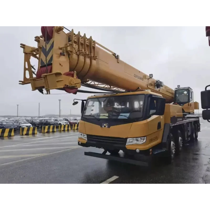 XCMG QY50KD truck crane is a high-performance lifting equipment with excellent lifting capacity and stable performance. The main parameters of the crane include: the length of the whole machine is 14030mm, the width is 2800mm, the height is 3630mm, and the self-disassembly counterweight mass is 1000kg. It is equipped with two engine models, D10.38-50 and SC10E380Q5, with rated power of 276kW and 279kW respectively, which can meet the needs of various complex construction sites.